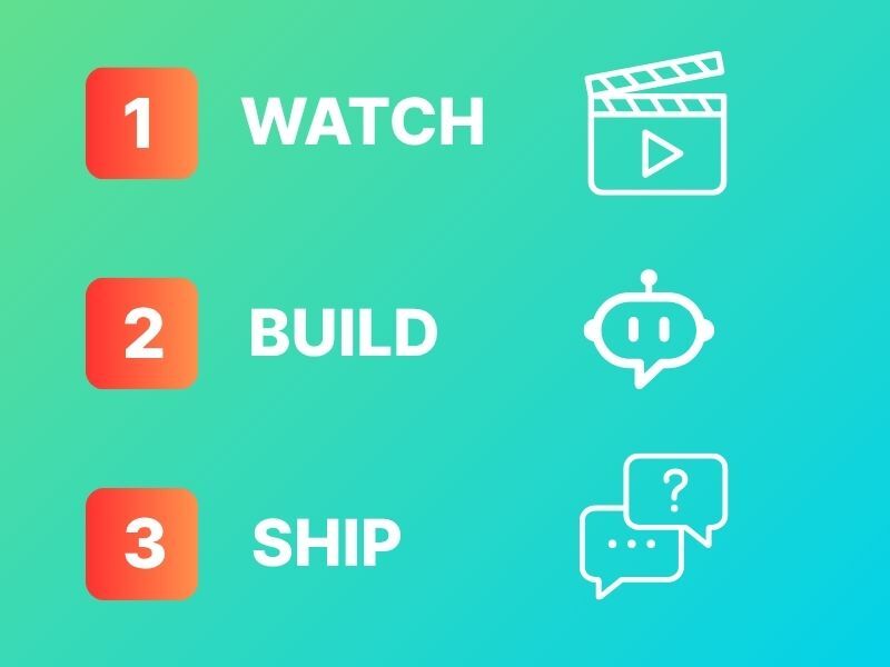 Spend 60–90 minutes a day. Watch the walkthrough, follow the framework, and build with your AI assistant (live or on replay).